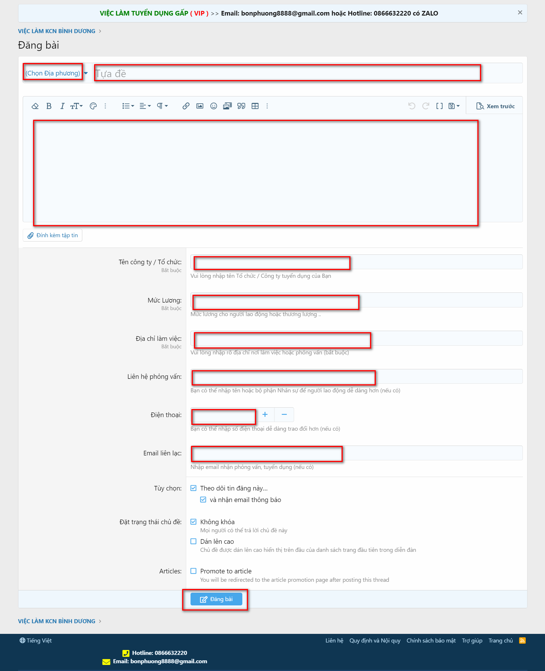 - Sau đó Mời Bạn nhập đầy đủ thông tin nội dung tuyển dụng như: