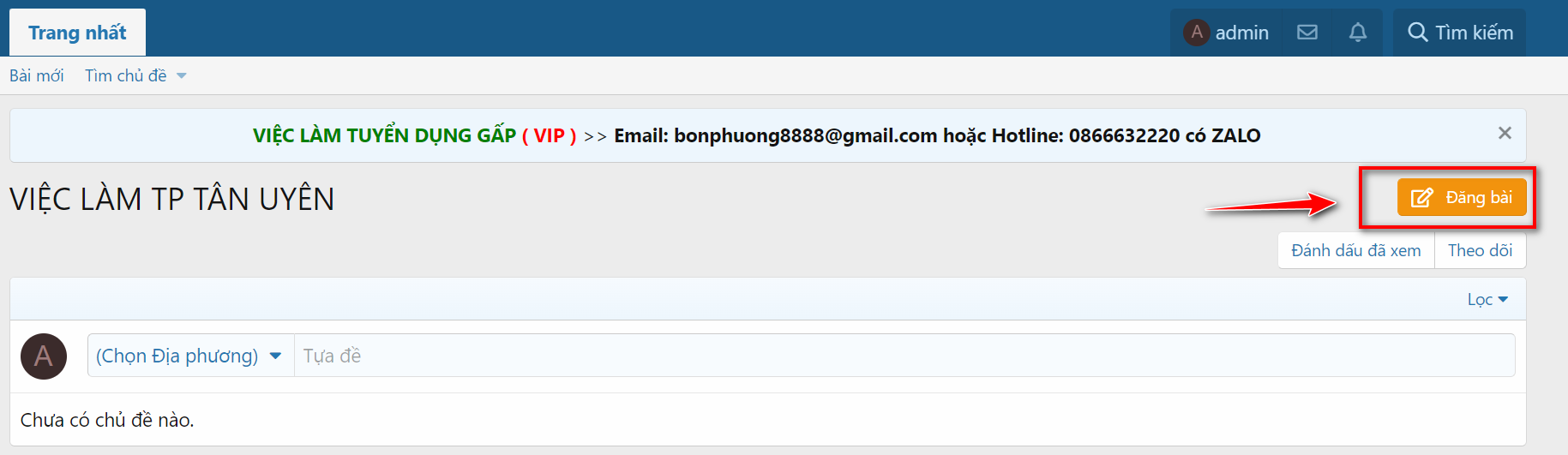 ĐĂNG BÀI ở góc bên phải